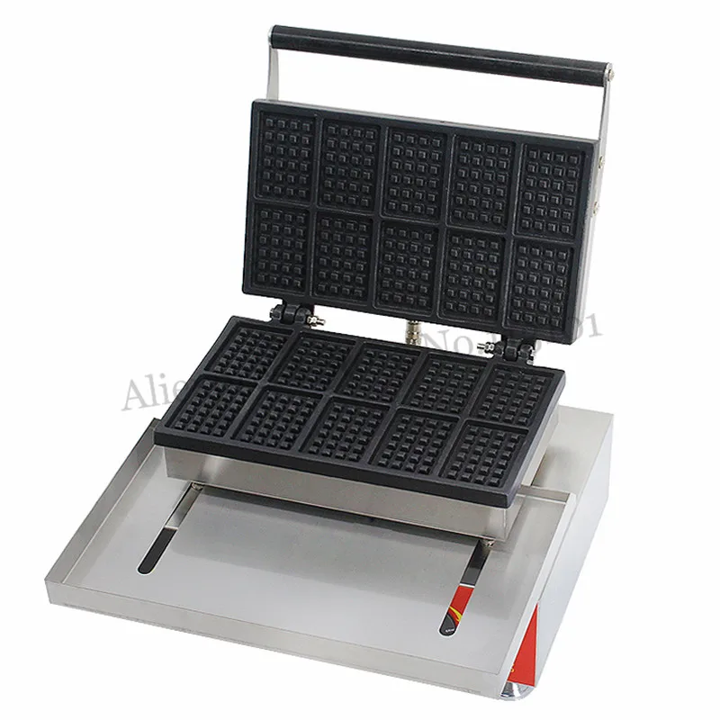 Best Quality Small Rectangle Waffle Baker Maker 110V 220V Nonstick Cake Machine Stainless Steel 1500W 10 Molds K